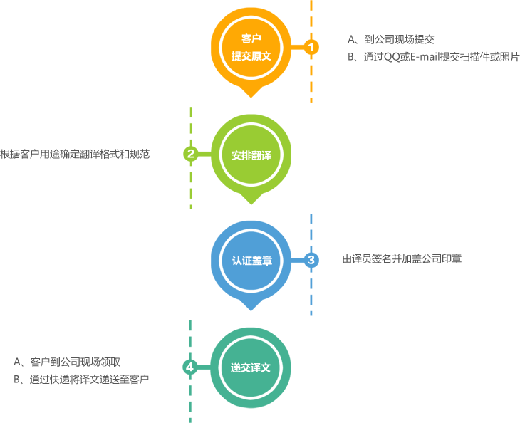 我们提供线上人工翻译,适用所有需要翻译的文件。客户通过拍照、扫描等形式把所需翻译文件网上(QQ、邮件)传输给翻译工作人员,我们的专家译员将在指定时间内完成翻译,并盖章,附带公司资质证明复印件,通过快递送件上门。让您花少量的钱又可免去您的节省舟车劳顿,在家即可坐等收件!